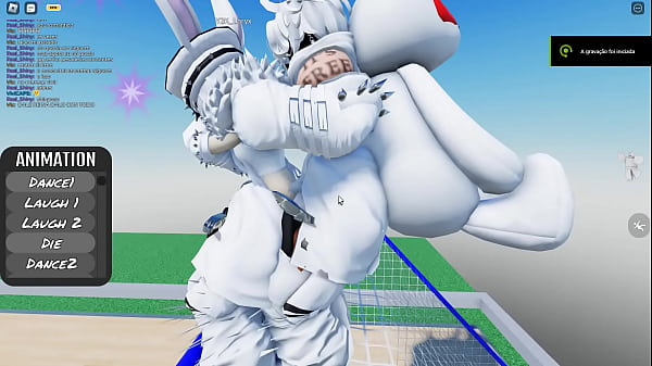 Coniglietto bianco birichino che scopa un coniglietto innocente nella pelliccia