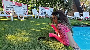 Una ragazza tatuata e sexy si fa scopare nella piscina di un campeggio naturista.