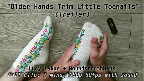 Mani anziane tagliano le unghie naturali delle piccole dita (POV)