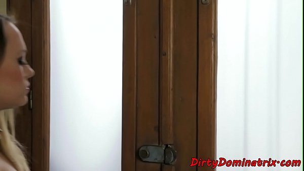 Lezdom ha dildoato nella figa da sub timido