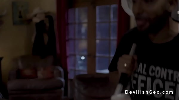 Un tizio gioca con una fidanzata bionda e pallida e la scopa