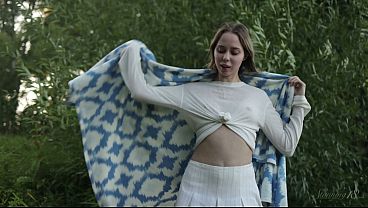 Lo storditore sensuale dai capelli biondi Vivi Ronaldinha ha bisogno di rinfrescarsi in un croccante acquarello dopo una brutta azione sessuale sulla riva del lago
