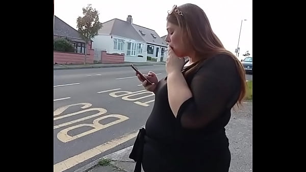 Tettona brunetta fumando e giocando con le tette fuori
