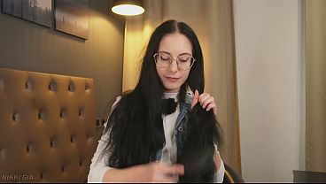 Ragazza asiatica Ange Venus si fa trecciato mentre shes succhia e si masturba
